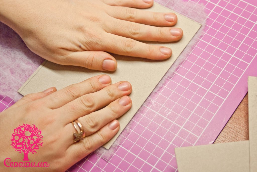 берем кусочек ткани\марли и приклеиваем форзац
